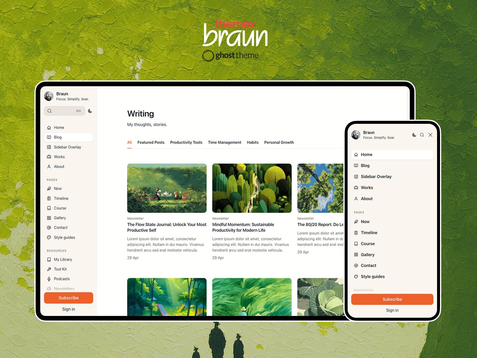 Braun is the perfect Ghost theme for showcasing your work and captivating your audience. Tailored for designers, developers, and solopreneurs.